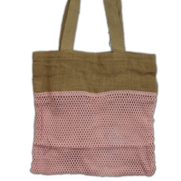 Haz tus compras o salidas diarias con un toque de conciencia y diseño con esta bolsa de malla artesanal hecha con yute natural y algodón rosa. Una alternativa ecológica, práctica y elegante que combina resistencia y ligereza en un solo accesorio.