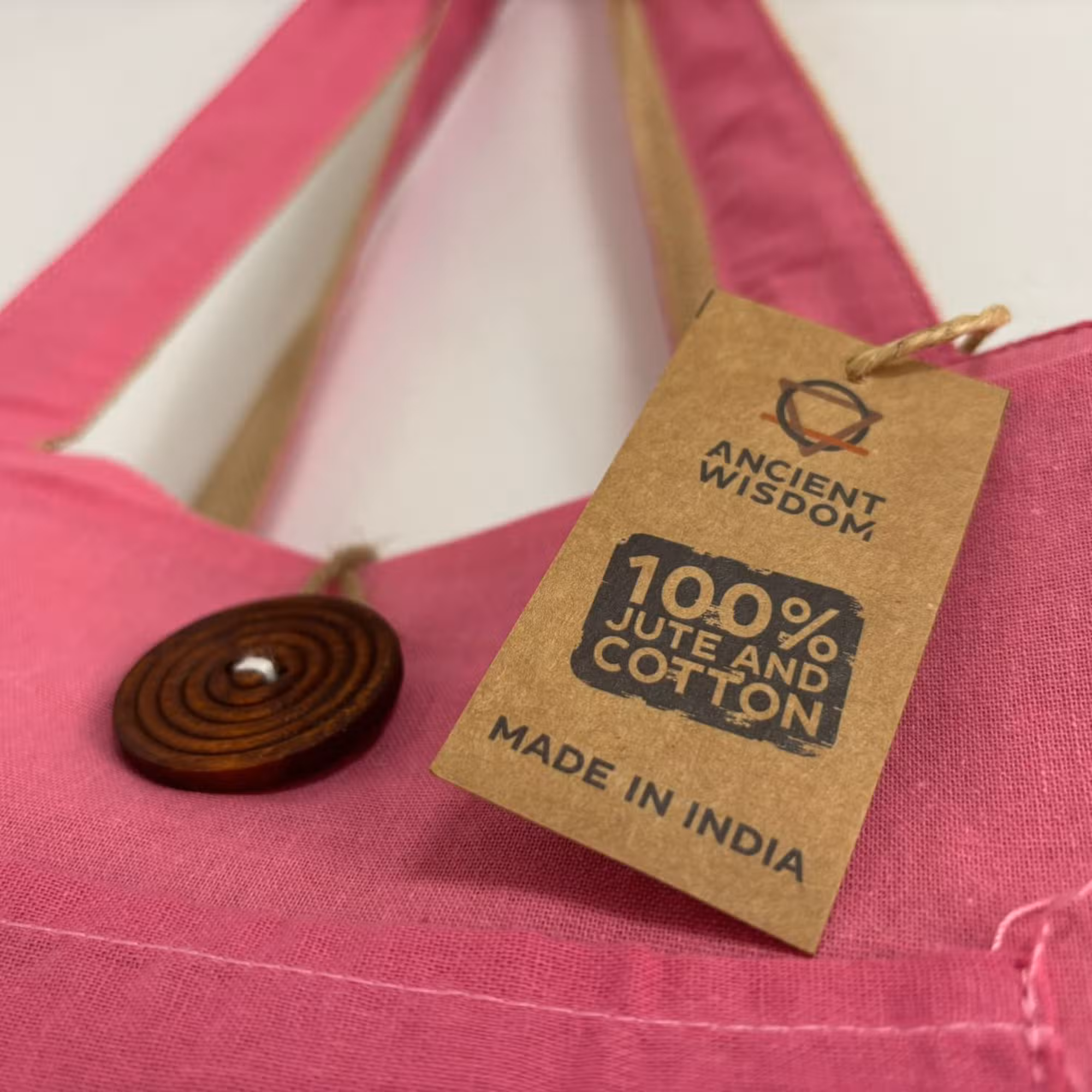 + Envíos gratis desde 40 €Bolsa reversible de yute y 100% algodón natural en color rosa, perfecta para aquellas clientas que buscan estilo y funcionalidad en un solo producto. Con un diseño único de doble cara, puedes usarla por cualquiera de los dos lados – ya sea el de yute para un toque más natural o el de algodón para un look colorido y moderno.