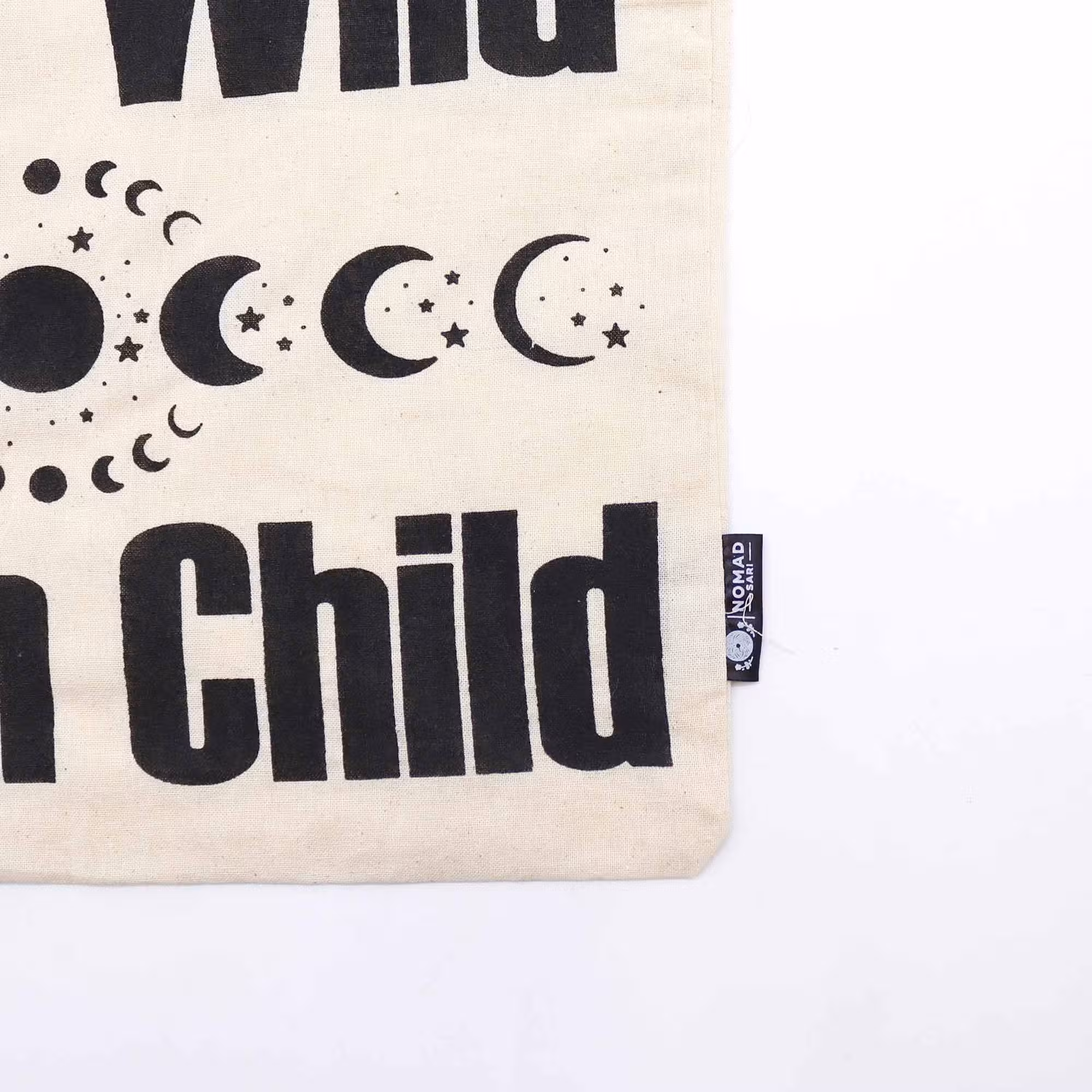 Fabricada en algodón 100% natural, de tamaño 40×36 cm, esta tote bag reutilizable es ideal para tus compras, llevar al trabajo, la universidad o usar como bolso diario. Su diseño con el mensaje “Stay wild moon child” transmite energía, autenticidad y conexión con la naturaleza.