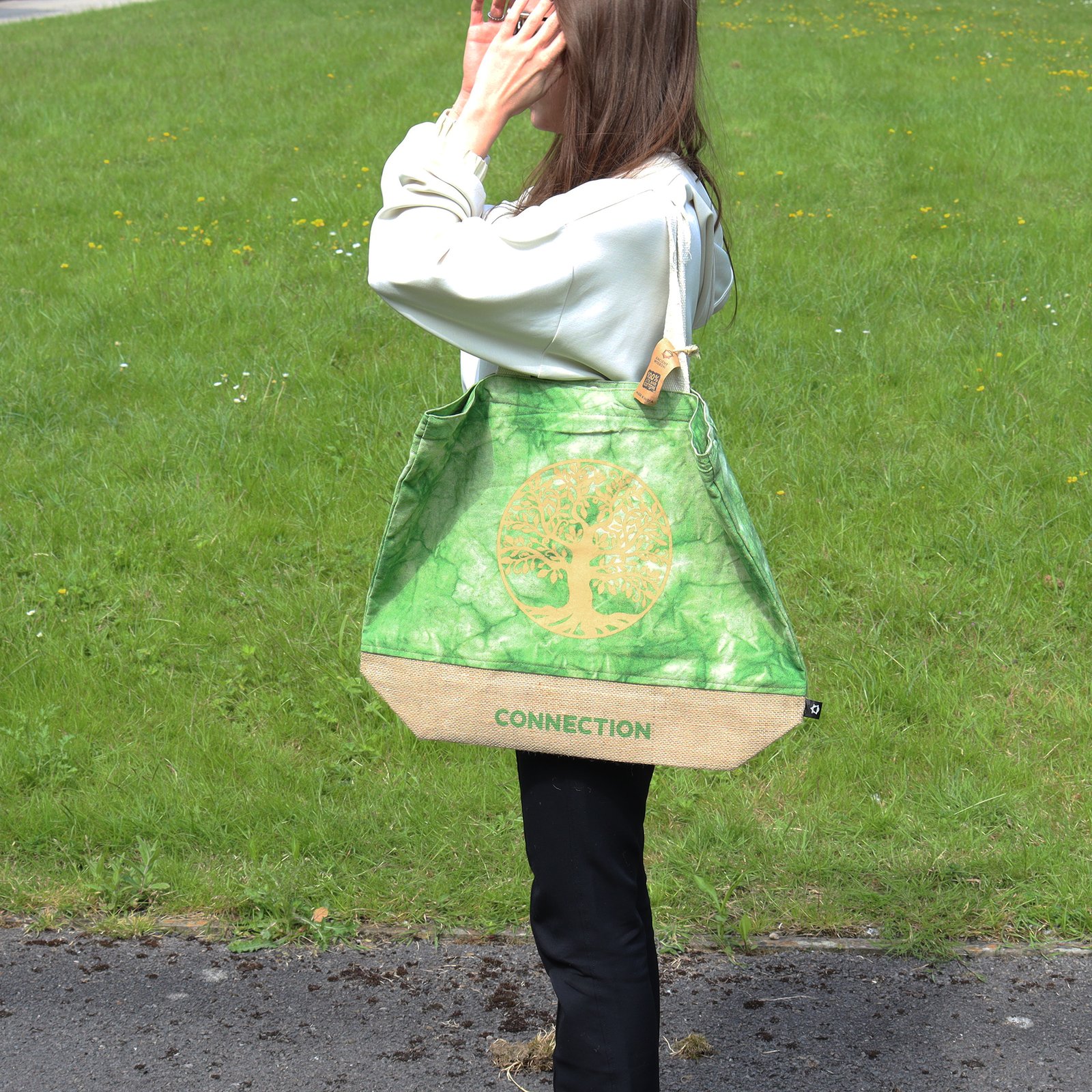 Estas bolsas ecológicas tipo tote, importadas directamente de India, están elaboradas con una mezcla resistente de fibras naturales, garantizando durabilidad y respeto por el medio ambiente.